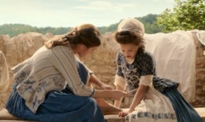 The village church is not only a reminder of the place of education, but of a recurring Christian theme in the story?sacrifice. When Belle enters the building, a large crucifix can be seen taking up most of the wall in the front of the sanctuary. Directors and cinematographers don’t take such details lightly. The cross is the a focal point throughout that?scene, and this could not be an accident. Belle will sacrifice herself to take her father’s place as a prisoner of the Beast. The Beast will sacrifice himself to rescue Belle from the wolves. Belle will continue to sacrifice her freedom to care for the Beast while he recovers from his wounds, even though she could have easily gotten away if she had left him to die in the woods. In a sequence new to this film, we find out Belle’s mother had sacrificed her own comfort, insisting Belle’s father, Maurice, take their very young child away lest she contract the plague from her. The Beast sacrifices what seems to be his only chance to become human again, freeing Belle so she could return to her father.