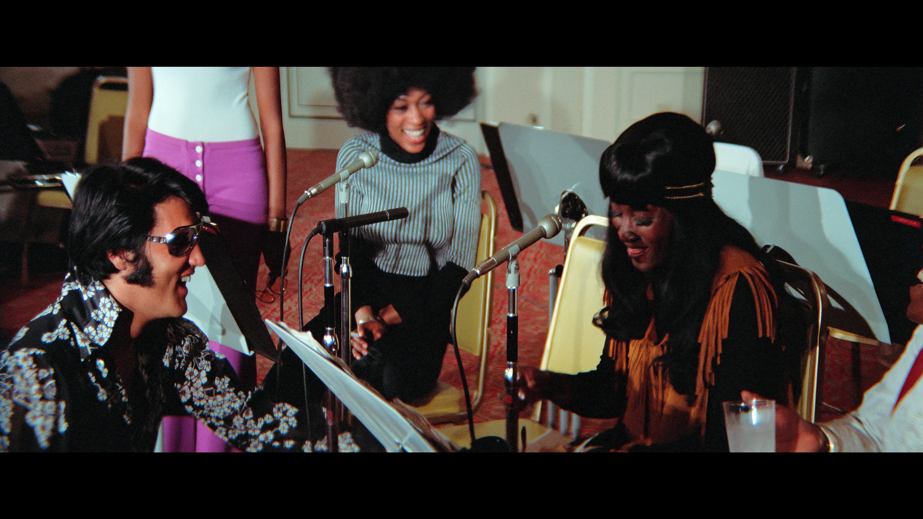 The footage, which is brought to life very well and excellently remastered, is either naturally very colorful or enhanced to bring out the colour. The scenes we see in the venue, behind the scenes, and in other archival footage have a strong focus on colour. This unique footage, even for those familiar with Elvis’ TV appearances and other documented performances, is engaging. Baz puts it together very well with his editors to create what often feels like a purposefully-made concert film, one that could be made today. But I struggle to see why he does this.