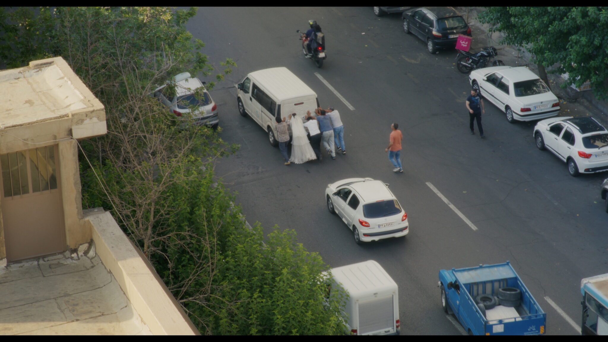 The strange group crowding into the van (including a bride and groom) creates a comic situation, even as they discuss the things they want to do to Peg Leg. In the end, it will come down to Vahid and how he will ultimately deal with the reality.