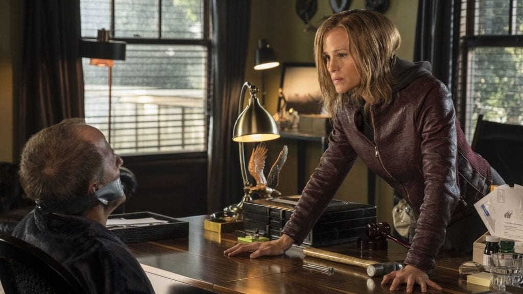 Seconds after we watch Jennifer Garner’s soccer mom grapple (and kill) a tattoed man in her car, she’s flashing back to years prior when she and her daughter had a run-in with a matching set of mother-daughter Girl Scout cookie-selling, classist mantra-slinging antagonists. Her daughter takes issue with Garner’s Riley North, questioning why she didn’t just punch the other mom in the face. North’s reply?