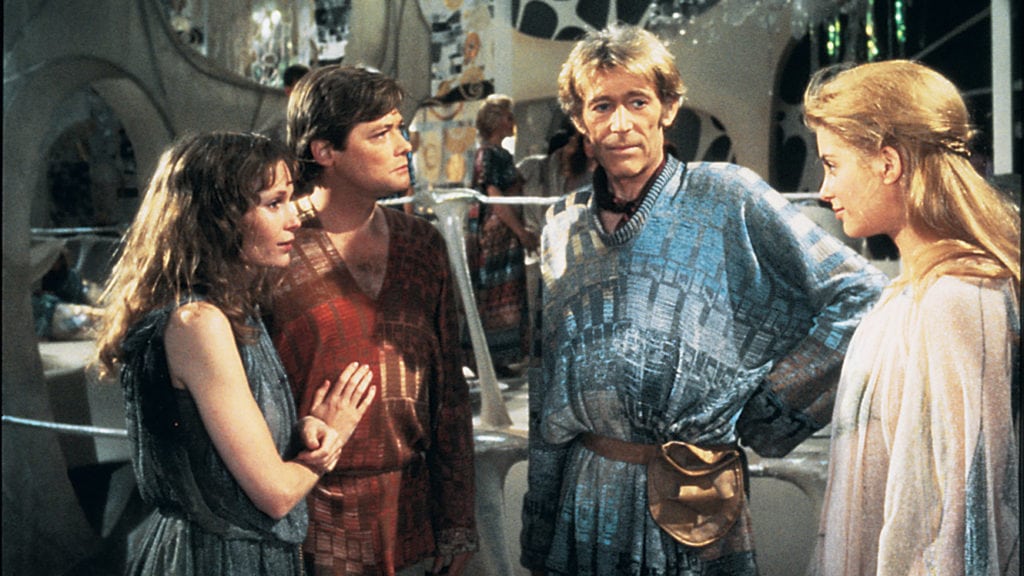 Slater ended up in?Ruthless People, The Secret to My Success,?and?City Slickers, before popping up on The CW?Supergirl?show, but she wasn’t the big draw in 1984. Now, thanks to Warner Brothers Archive Collection, we see the prime versions of Faye Dunaway (The Thomas Crown Affair, The Three Musketeers, Chinatown, The Towering Inferno) and Peter O’Toole (Lawrence of Arabia, The Lion in Winter, My Favorite Year), who play the witch Selena and Kara/Supergirl’s fellow Kryptonian Zaltar, who sets all of the misfortune in motion by losing the Omegahedron onto Earth by way of deep space.