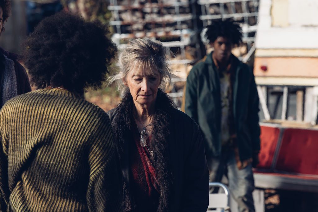 A smart concept for the film’s length and scale, it evokes memories of Cabin in the Woods and The Witch, and is most reminiscent of What Comes At Night by Trey Edward Shults. Mangled nature, overgrown infrastructure, and a generally unpleasant color palette contribute to a bleak, oppressive atmosphere—even within natural settings removed from human brutality. Filming in Hamilton, Ontario, the production capitalizes on less scenic areas free from beautification, demonstrating how a suburb can be convincingly transformed into an apocalyptic landscape through effective lighting, carefully chosen props, and precise colour grading.